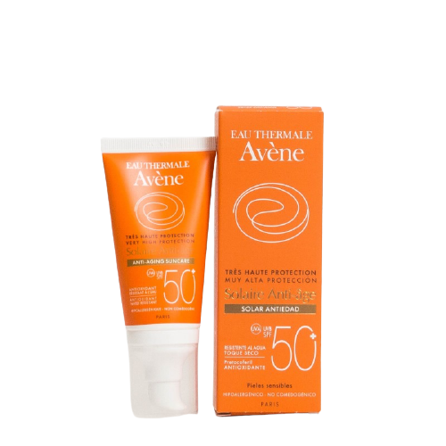 El Avene Fotoprotector SPF 50+ Crema Antiedad es un protector solar de muy alta protección y antienvejecimiento, ideal para pieles sensibles. Ofrece una amplia protección contra los rayos UVB y UVA gracias a su exclusiva asociación de activos SunSitive Protection, que combina filtros solares fotoestables y eficaces a lo largo del tiempo. Incluye Pre-tocoferil, precursor de la vitamina E, que proporciona propiedades antioxidantes y ayuda a proteger las células de los radicales libres, así como Agua Termal de Avene, conocida por sus propiedades calmantes y antiirritantes. El Acofiline, un activo arquitecto, asociado al complejo SunSitive Protection, contribuye a la prevención del fotoenvejecimiento.