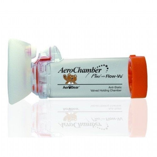 La Cámara de inhalación Aerochamber NE es un dispositivo diseñado para facilitar la administración de medicamentos en aerosol. Se trata de un tubo plástico con una parte final de goma sellada y una pieza que se coloca en la boca, equipada con una válvula que controla el aerosol (spray). Este espaciador ayuda a enviar el medicamento a las pequeñas vías respiratorias en los pulmones.